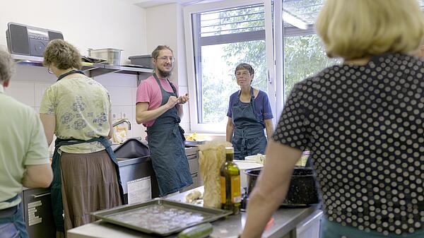 Heute gibt es in Deutschland vielerorts sogenannte Küchen für Alle, kurz auch Küfa genannt. Häufig in sozialen Zentren angesiedelt, handelt es sich dabei um selbstorganisierte Kochgruppen. Gekocht wird meist in einem festen Rhythmus, oft einmal in der Woche. Und das in der Regel vegane Essen wird zum Selbstkostenpreis ausgegeben.